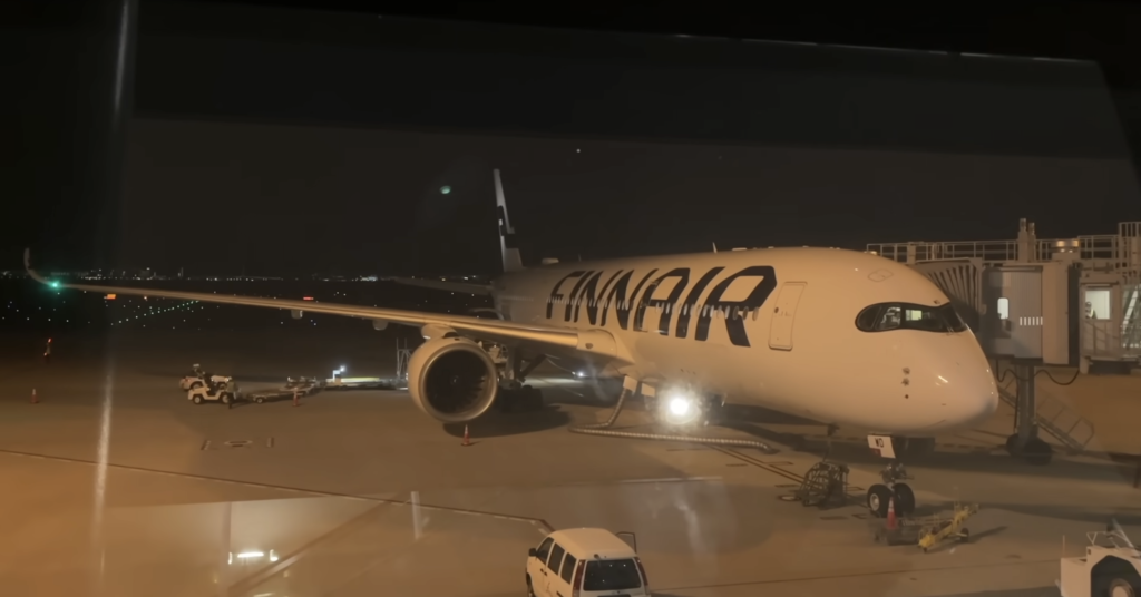 搭乗口で待っていたのは、真っ白な機体に「FINNAIR」の文字が美しく映えるエアバスA350。これ以上ないほどシンプルなデザインですが、その潔さがかえって北欧らしい知性とセンスを感じさせます。さあ、初のヘルシンキへ向けて、レッツゴー!!