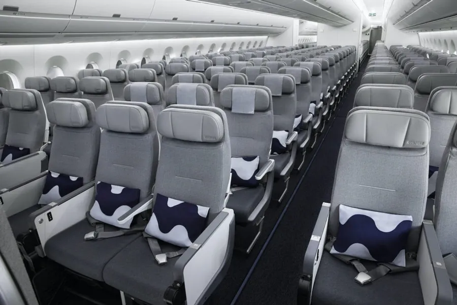 また、機内に一歩足を踏み入れた瞬間から「マリメッコ」や「イッタラ」といった北欧ブランドのデザインに包まれるのも、この航空会社ならではの贅沢です。