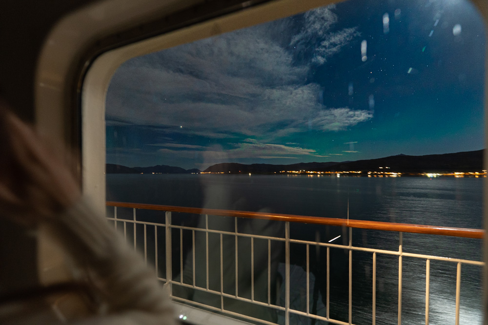 北行きと同じく、オーロラチャンスがある北極圏での夜が3夜あります。北行き、南行き、どちらが見やすいといったことはなく運次第。