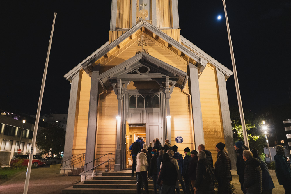 オーロラの街トロムソで、夜中の12時に「トロムソ大聖堂」で行われるミッドナイト・コンサート。