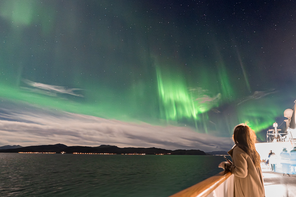 雄大な大自然の中を進むクルーズ、見られるのはオーロラだけではありません。