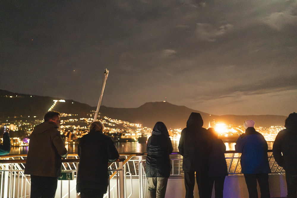 ちなみに、北行きの時のベルゲン出航の際はこんな感じで賑やか。