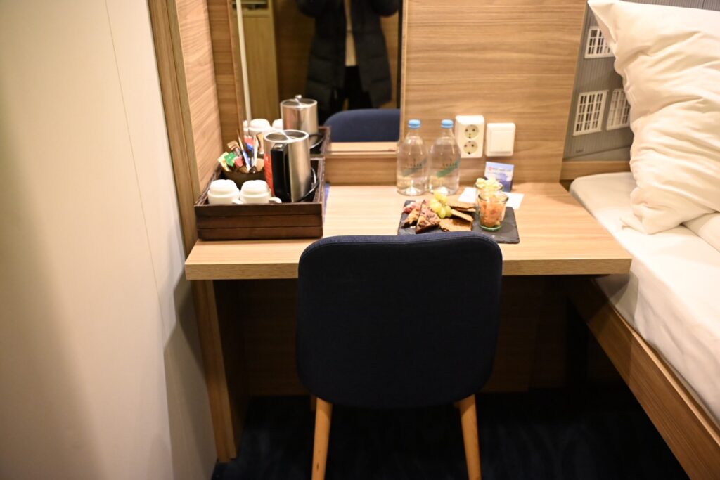 フッティルーテンのオーロラクルーズでは、オーロラが出たら船内放送で教えてくれるので、寒い中オーロラ待ちをしなくてOK。お部屋でくつろいだり、船内のカフェでゆっくりしながらオーロラが出るまで過ごせました。