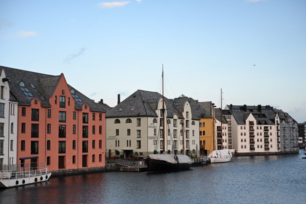ノルウェーのいろんな街に立ち寄るので観光も楽しめます。オーレスンは、カラフルな建物が並ぶ、まるで絵本のような港町。