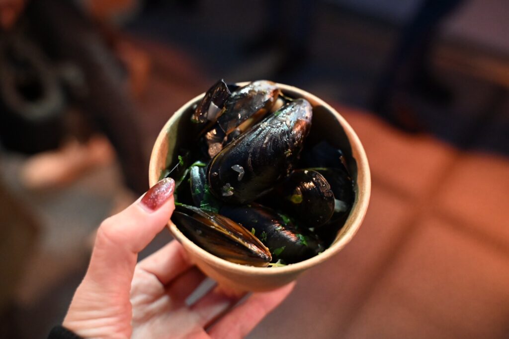船に戻ると、デッキでムール貝のふるまいイベントが!