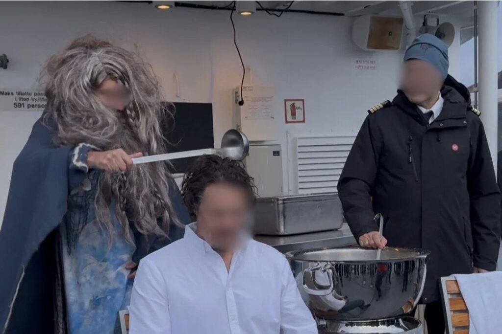 儀式の内容は、海の神様に扮したクルーが、乗客の服の中に氷水を入れるという衝撃的なもの!!