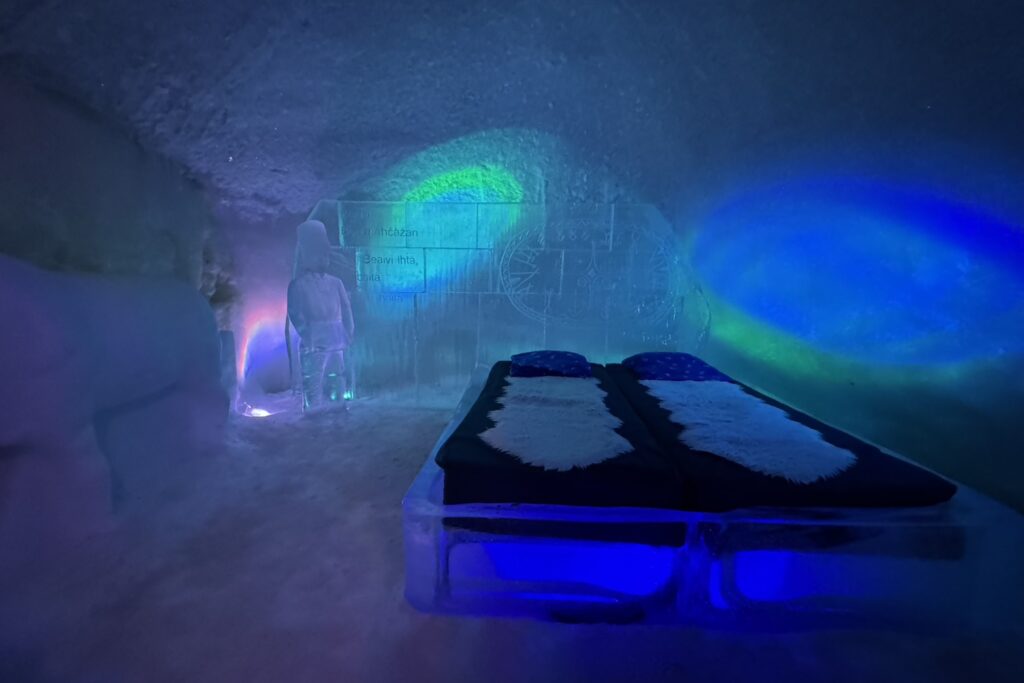 もちろんベッドも氷でできていてカッチカチ。部屋ごとにテーマがあって、氷や雪で作られたアート作品がありました。