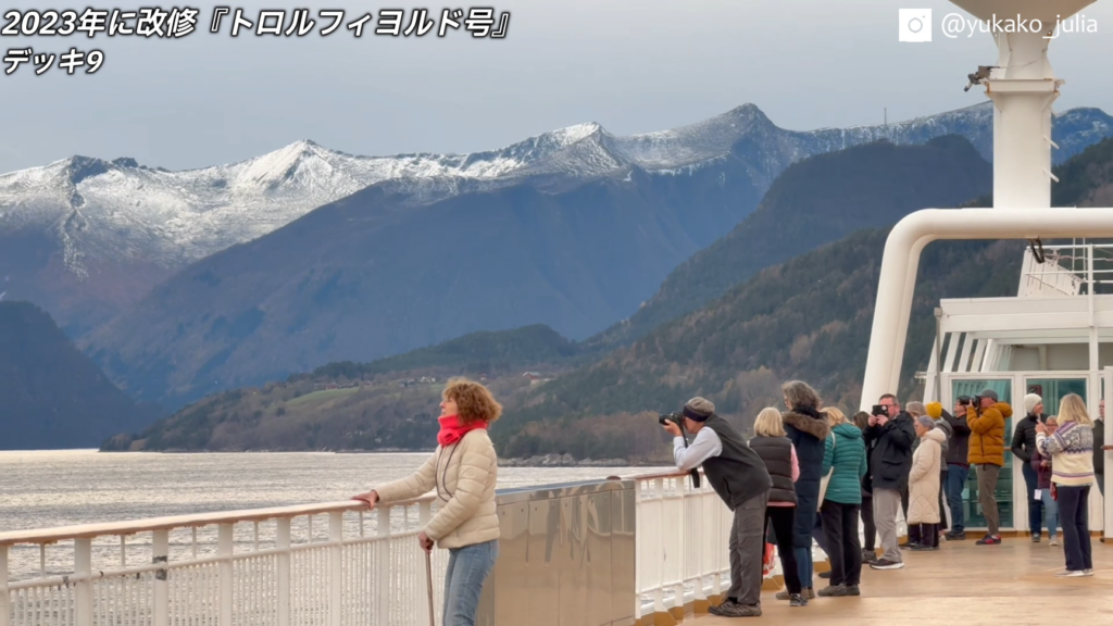 乗船前から服用しておくのがおすすめです。また、入り江(フィヨルド)に入ると揺れが嘘のように落ち着きます。フィヨルドを航行している時間を使って食事や休憩を取ると、体調管理がしやすくなります。