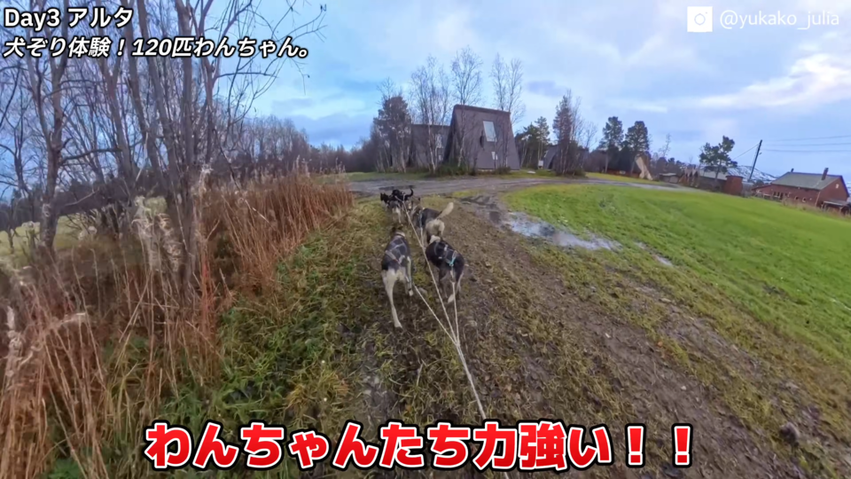 人懐っこいハスキー犬たちとの「犬ぞり体験」。力強く走る姿と、休憩中に見せる穏やかで人懐っこい表情のギャップに、すっかり心を奪われてしまいました。