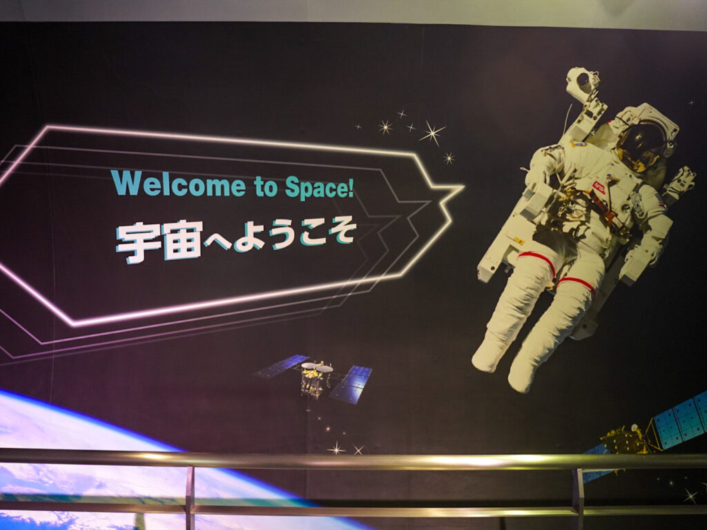 館内はリフトオフシアター(打ち上げ体験映像)、「きぼう」日本実験棟 実物大モデル & フォトスポット、宇宙・ロケット・衛星展示が楽しめます。