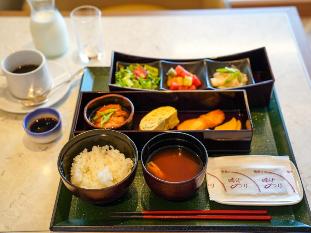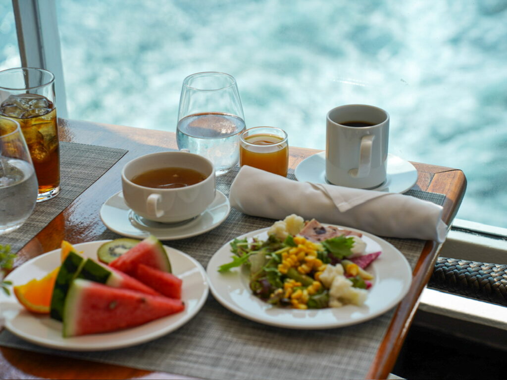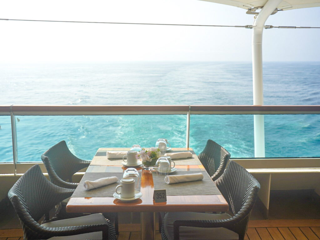 朝はテラスレストラン八葉の船尾のテラス席でいただきました。