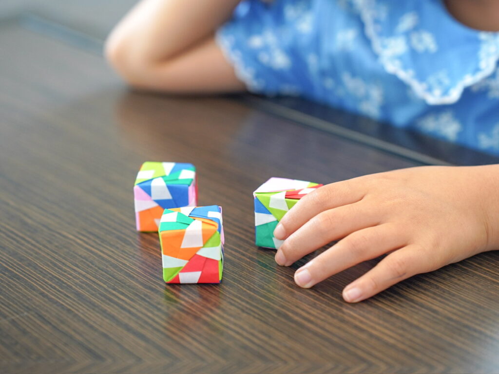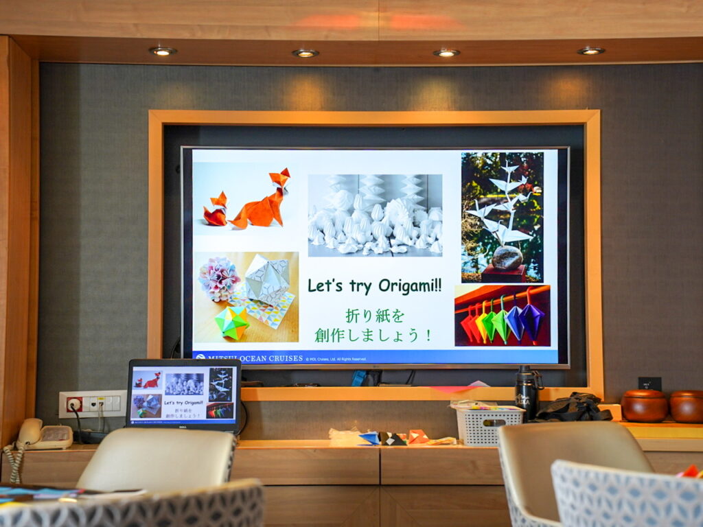 毎回欠かさず参加しているアート&クラフト教室のユニット折り紙にも参加。小学生の娘には少し難しかったですがサポートしながら完成!