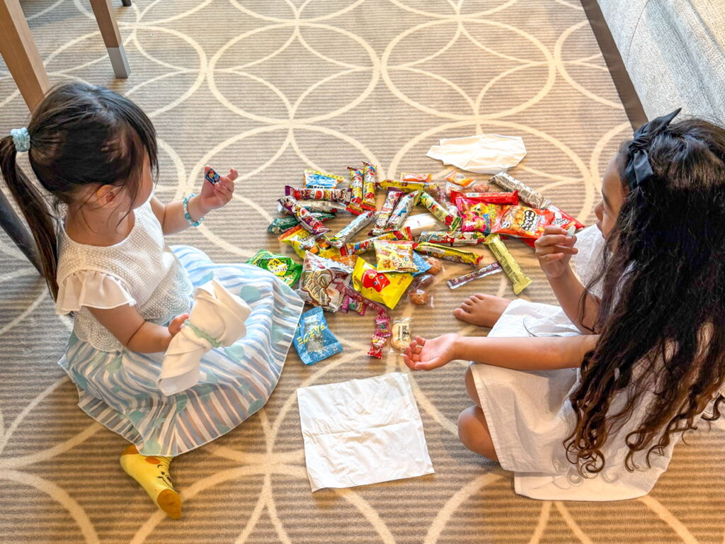 そして子供達のお楽しみお菓子投げイベント。クルーズ船に乗船している子供や地元のお子様も参加してとても賑やかな時間でした。