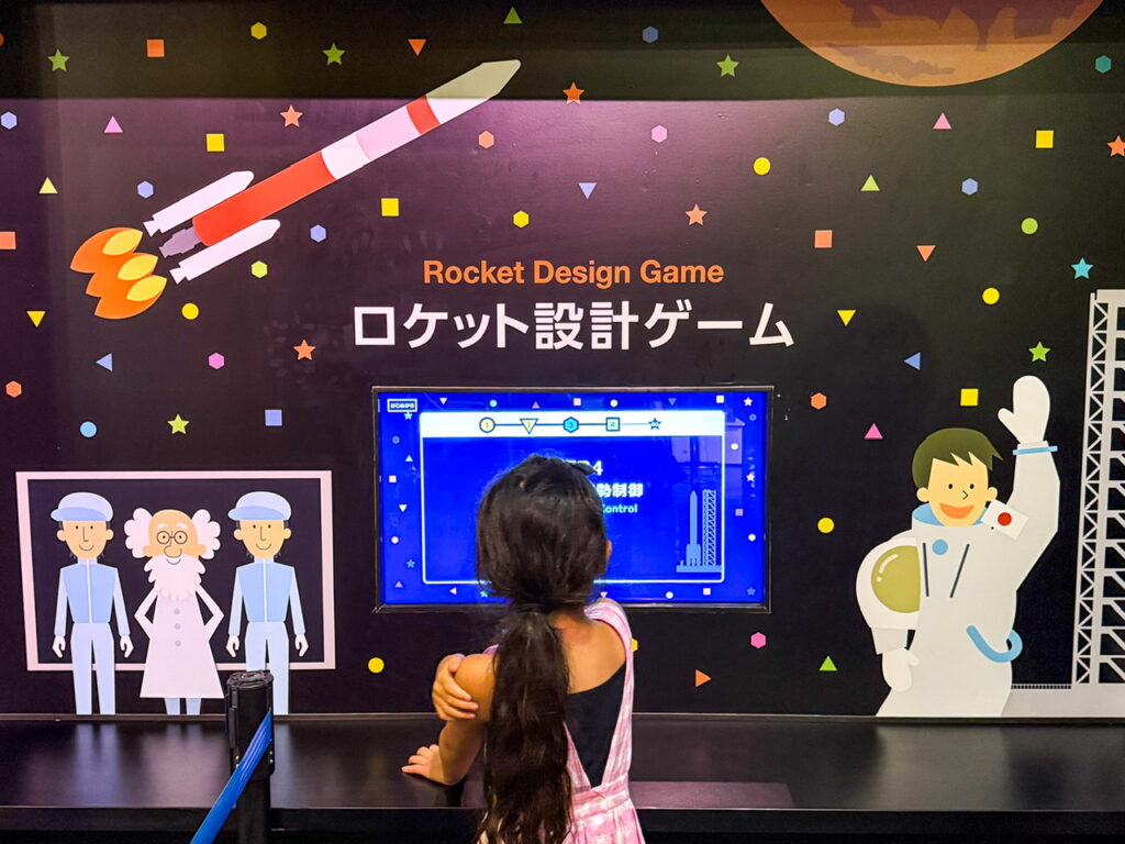 無重力感を模した写真撮影ができるフォトスポットも併設。ロケット設計ができるゲームは大人気でした。