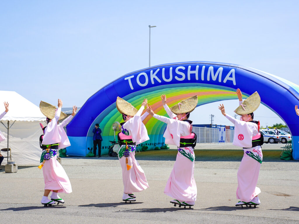 小松島到着後は地元の方々のご厚意で阿波踊りの実演イベントが開催されました。