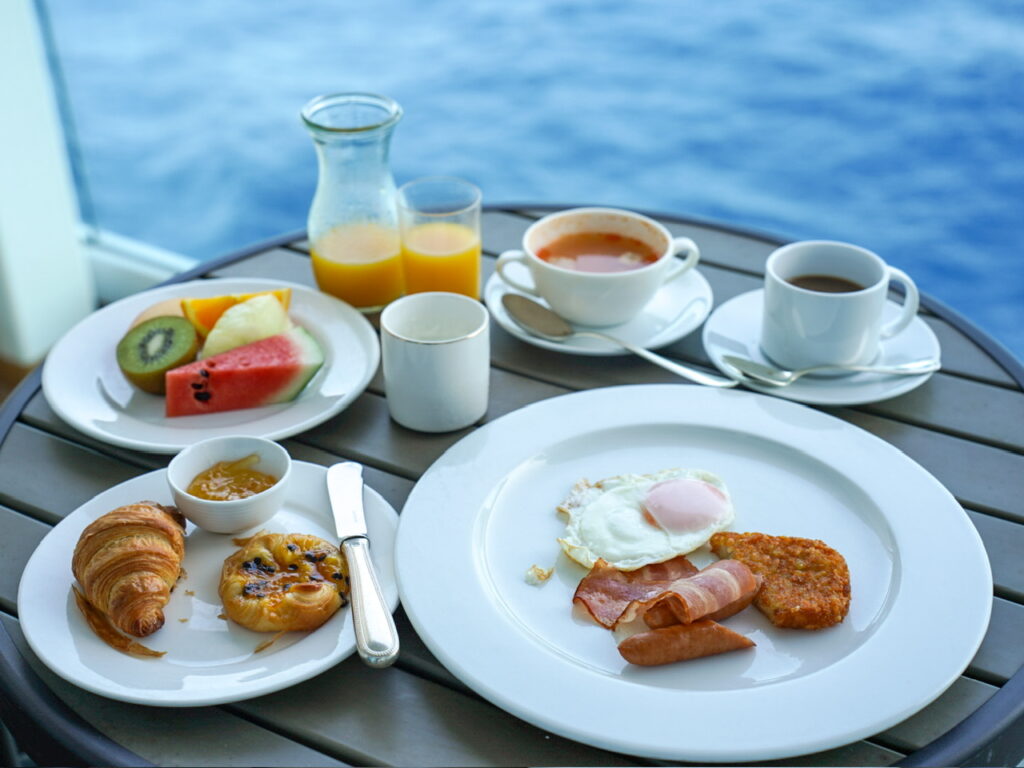 下船に向けて早めに朝食を食べ、下船の連絡を待ちます。