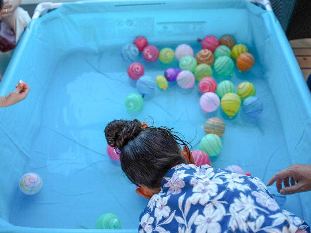 スイカ割りやヨーヨー釣り、輪投げなど子供が喜ぶ夜祭風の楽しいイベントが開催されていました。