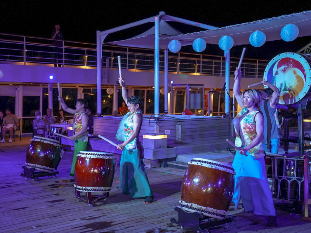 歌やダンス、クラシック音楽、今回は落語や和太鼓まで、気軽に芸術にふれることができるのはクルーズの最大の魅力です。