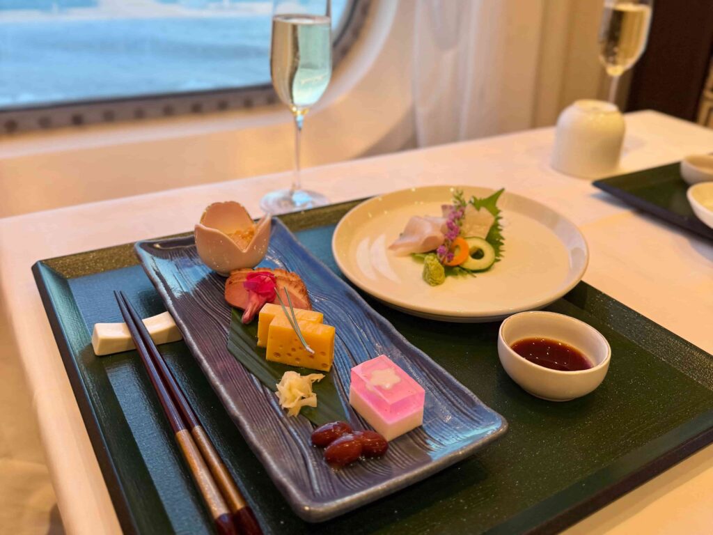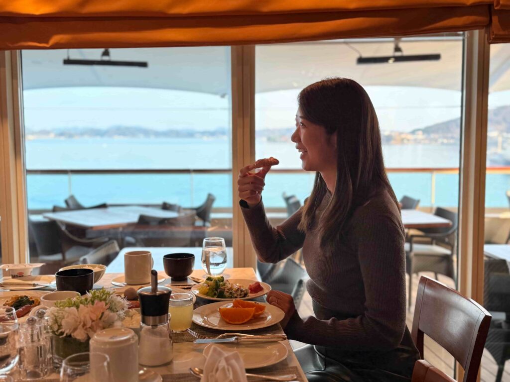 さらに瀬戸内海は非常に穏やかな海で船酔いもせず、壮大な橋をくぐり抜け、小さな島々を眺めながらデッキでのんびり過ごす時間はまさに非日常。カジュアル船では賑やかで童心に帰ってはしゃぐ時間が非日常となりとても楽しいですが、ラグジュアリー船はまた違う素晴らしさがありました。
