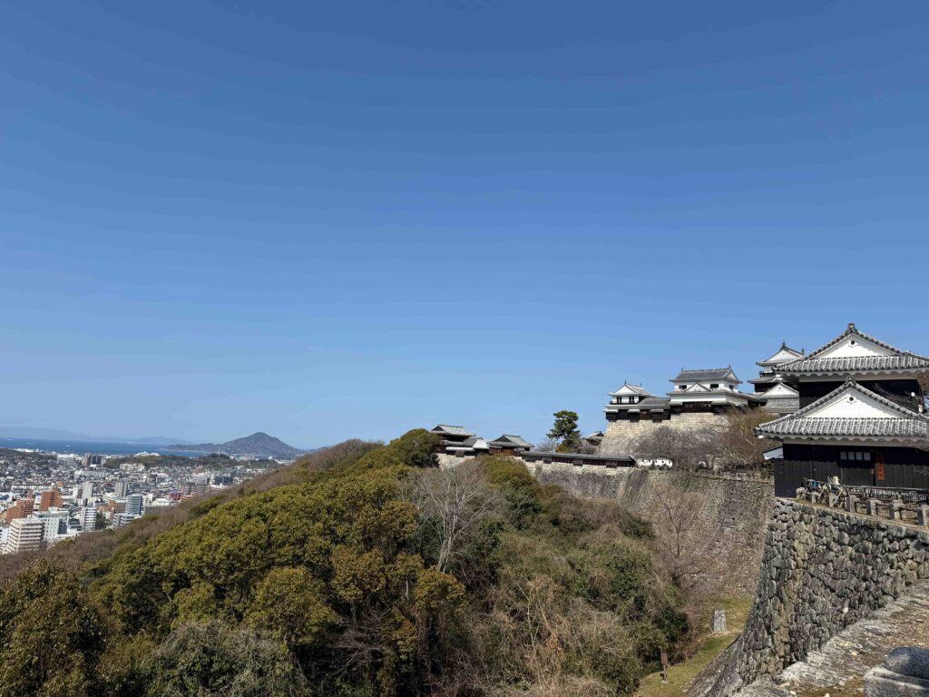 リフトとロープウェイで山を登りますが、オープンエアのリフトがおすすめです!頂上からはお城と松山市内を一望できる絶景が広がっています。