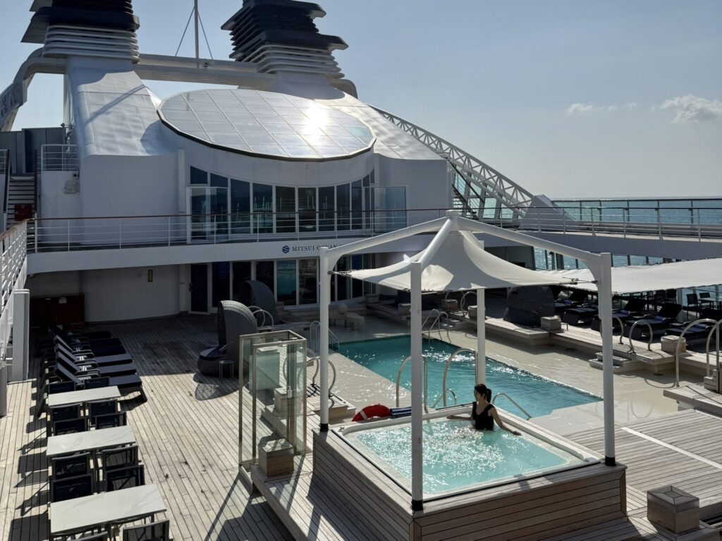 基本的な設備やスペックは三井オーシャンフジと同じになっており、客室数も同数で全室スイートタイプです。三井オーシャンサクラにしかない設備は、「スシバー」と「足湯」です。さらに日本船ならではの特徴が加わり、今からとても楽しみです。