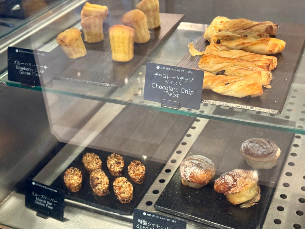 船という非日常の空間にいながら、毎朝の習慣である一杯を楽しめるのは本当にホッとできるひとときでした。日替わりで登場するカフェメニューの中で、私の一押しは絶品の「メロンパン」!