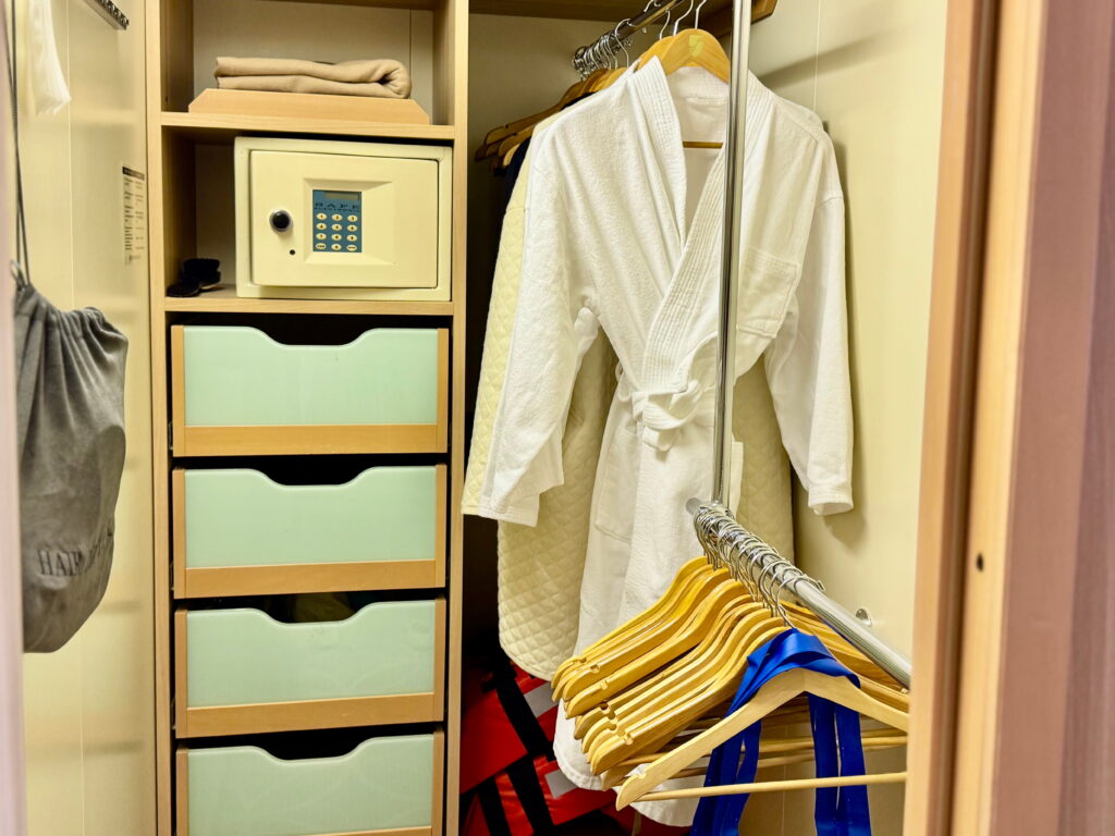 24.4㎡〜30.2㎡と聞くと比較的コンパクトに感じるかもしれませんが、ウォークインクローゼット、バスルームに2つの洗面台、ドレッサー、そしてお部屋の各所に複数の収納があるので、2人で過ごすには想像以上に快適。2人分のスーツケースを荷ほどきしても、収納場所は余るほどでした。