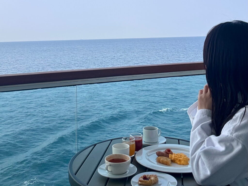 全室スイートルームという贅沢な空間は、まるで海に浮かぶ高級ホテルにずっと滞在しているような夢のような時間でした。