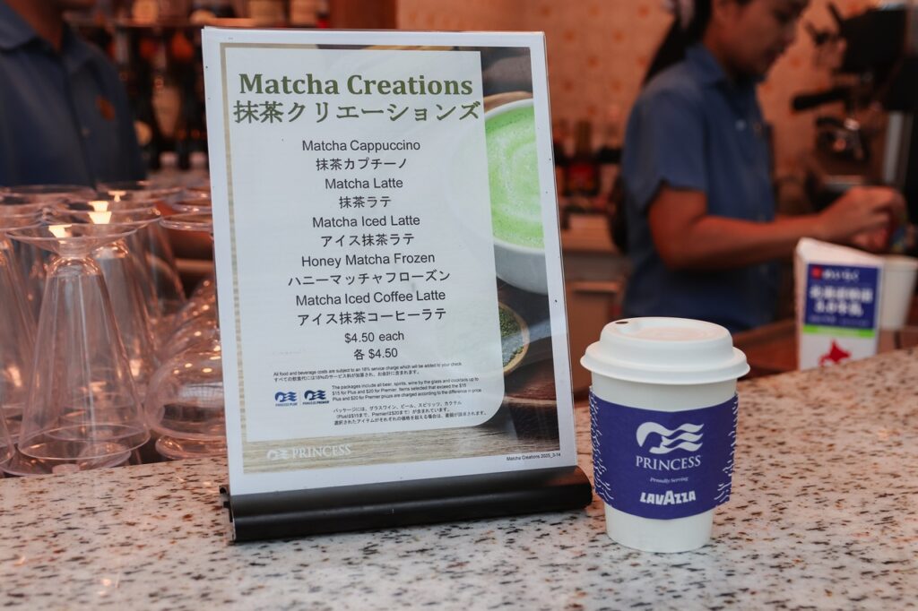 さらには、海外でも注目を浴びている、いま大人気の”抹茶”を使ったドリンクがあるのも、日本好きの外国人をたくさん受け入れるインターナショナルなダイヤモンド・プリンセスならでは。
