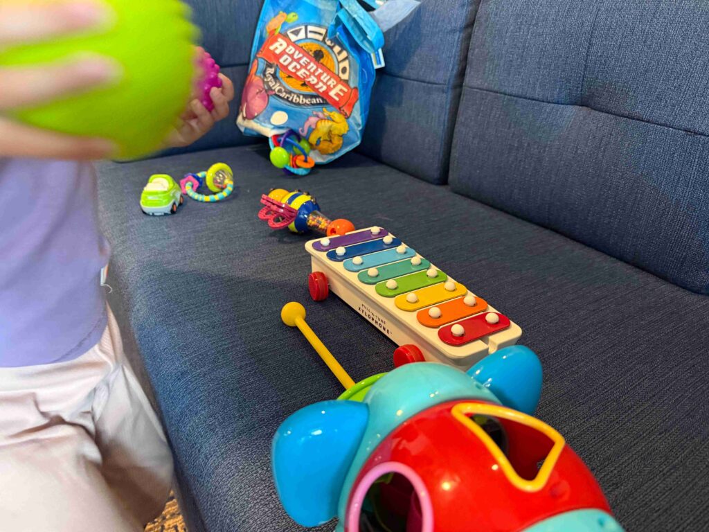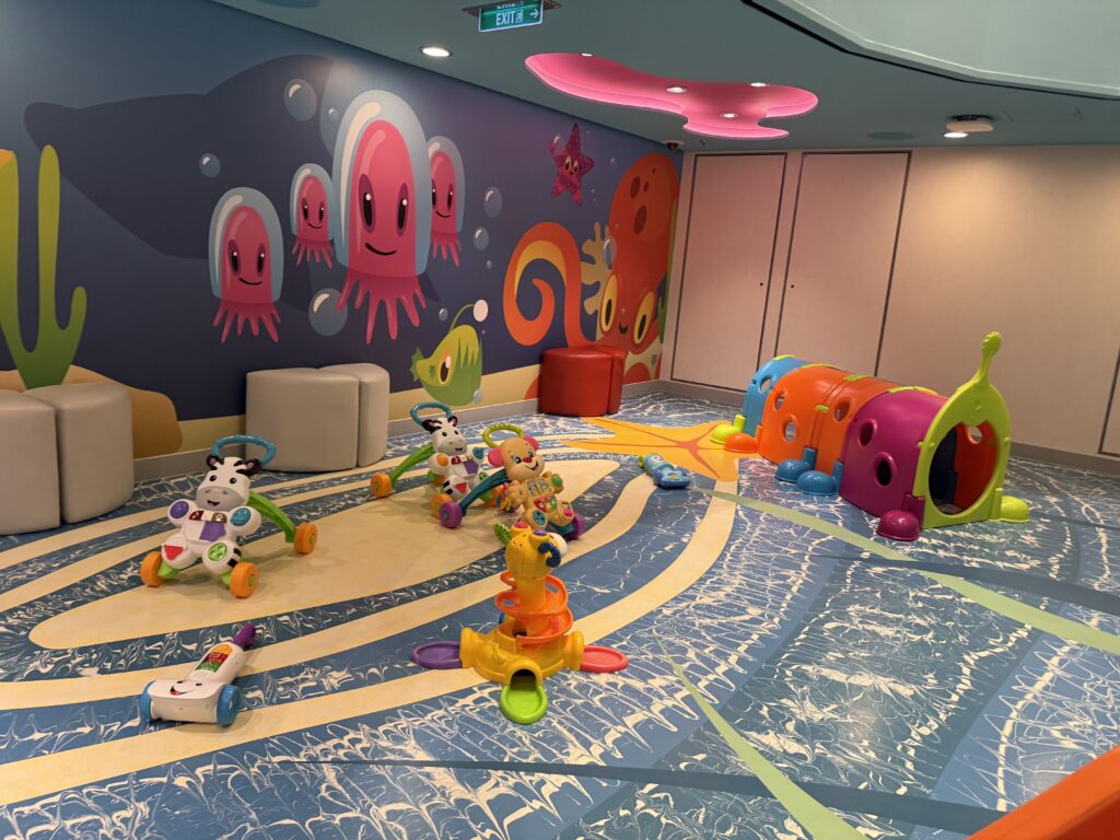 実は、あまり情報が出ていなかったのですが、前回ロイヤルカリビアンに乗船した際におもちゃをかりたことを思い出し、キッズクラブの先生に聞いてみました。するとこちらの船でも、おもちゃのレンタルサービス(無料)がありました!いくつかあるおもちゃをセットにしたものから、好きなものを選べます。お部屋に持って行けて、最終日の前日までに返却すればOK。荷物をなるべく減らしたい母娘旅には、大変ありがたいサービス!ぜひ乗船した際には、尋ねてみてくださいね。