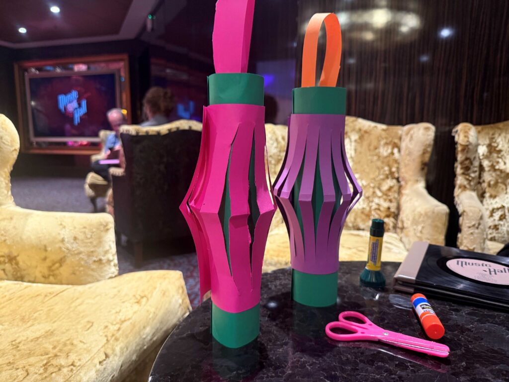 キッズクラブは、年齢別のクラスで託児をしてくれるサービスです。しかも、利用は無料(クルーズ代金に含まれています)なんです!参加すると様々な国籍の子どもと過ごす貴重な機会にもなります。娘は4歳なので「3〜5歳向けクラス」へ。海の生物をテーマにした工作、ダンス、スライム作りなどを楽しんでいました。最初、キッズクラブへ行くときは緊張していましたが、しばらくすると「キッズクラブ行きたい!」と自ら言い出すようになりました。みんなで踊ったことや、制作を頑張ったことなど、嬉しそうに話してくれました。スライム、ハンカチ、蝶々の飾りなど、色々と作ったものを持ち帰ることができるのも楽しさの一つです。
