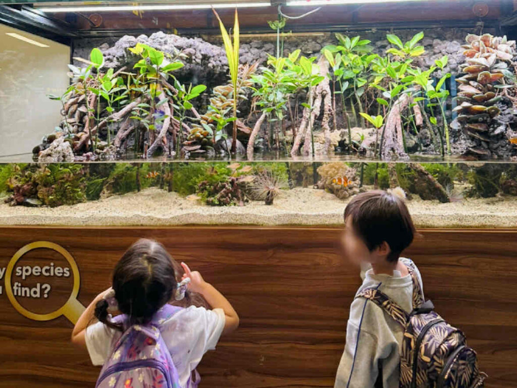 日本ではなかなか見ることができないような生き物やユニークな展示方法があり、子どもたちも大喜びでした。