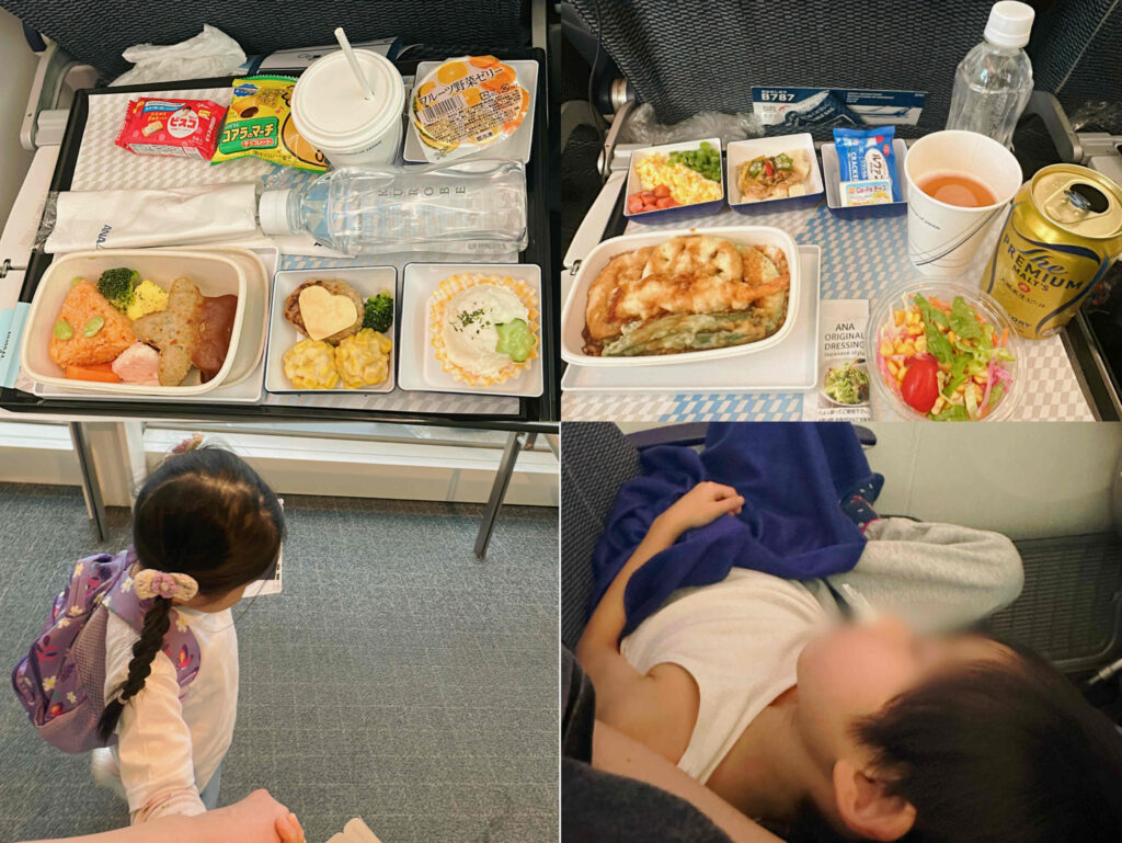 機内では映画を見たり、機内食を楽しんだり、少し眠ったりと、子どもたちも想像以上にリラックスして過ごしていました。