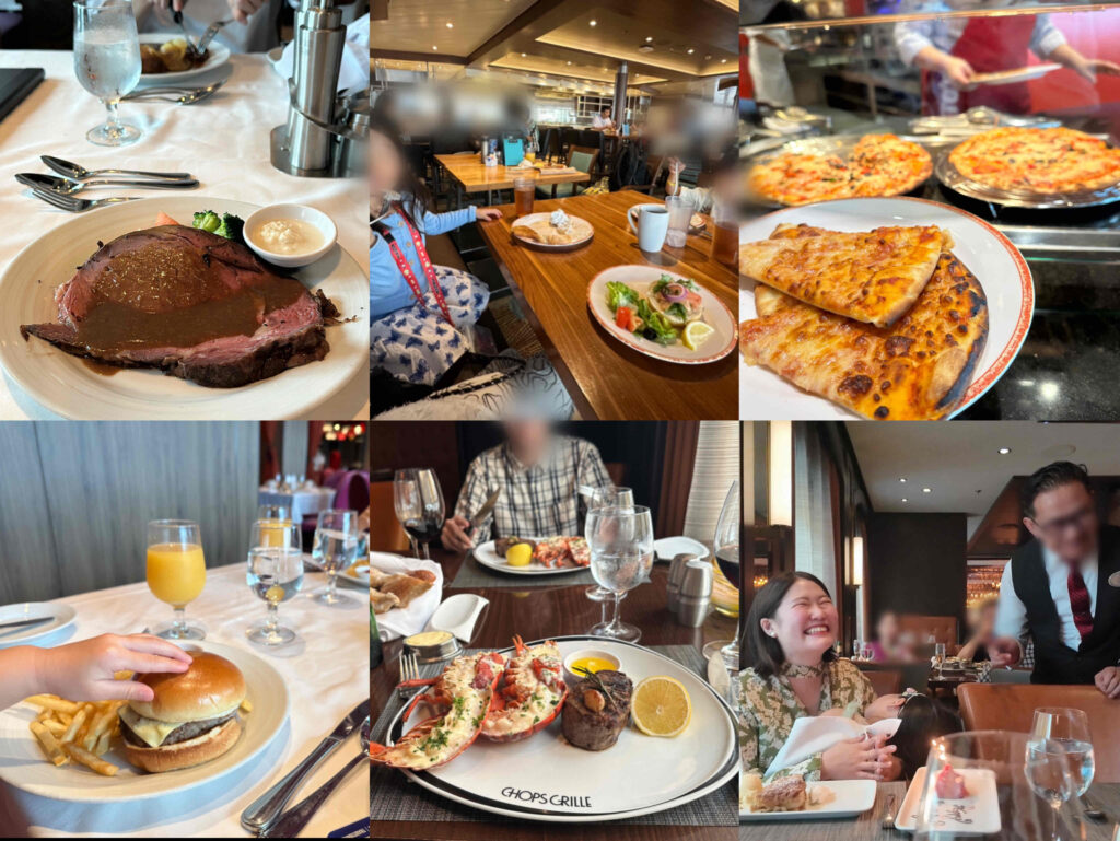 クルーズを予約した際についていた船内で利用できるオンボードクレジットも使えたため、少し特別なディナーをお得に楽しめたのも嬉しいポイントでした。