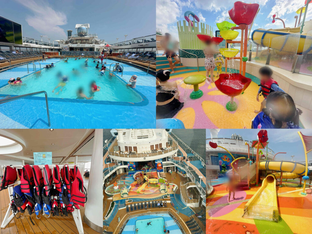 子どもたちが一番楽しみにしていたのが、船内のプールエリアです。