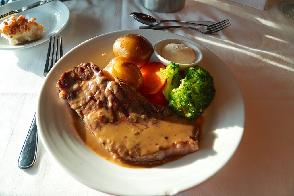 そして流石、アメリカの船!ステーキが美味しすぎて、ここにくると毎回、ステーキを食べていました。特にニューヨークステーキがおすすめです。