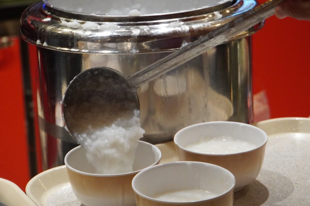 ピザが少し重たく感じる人はおかゆもあったので、こちらも夜食におすすめです。