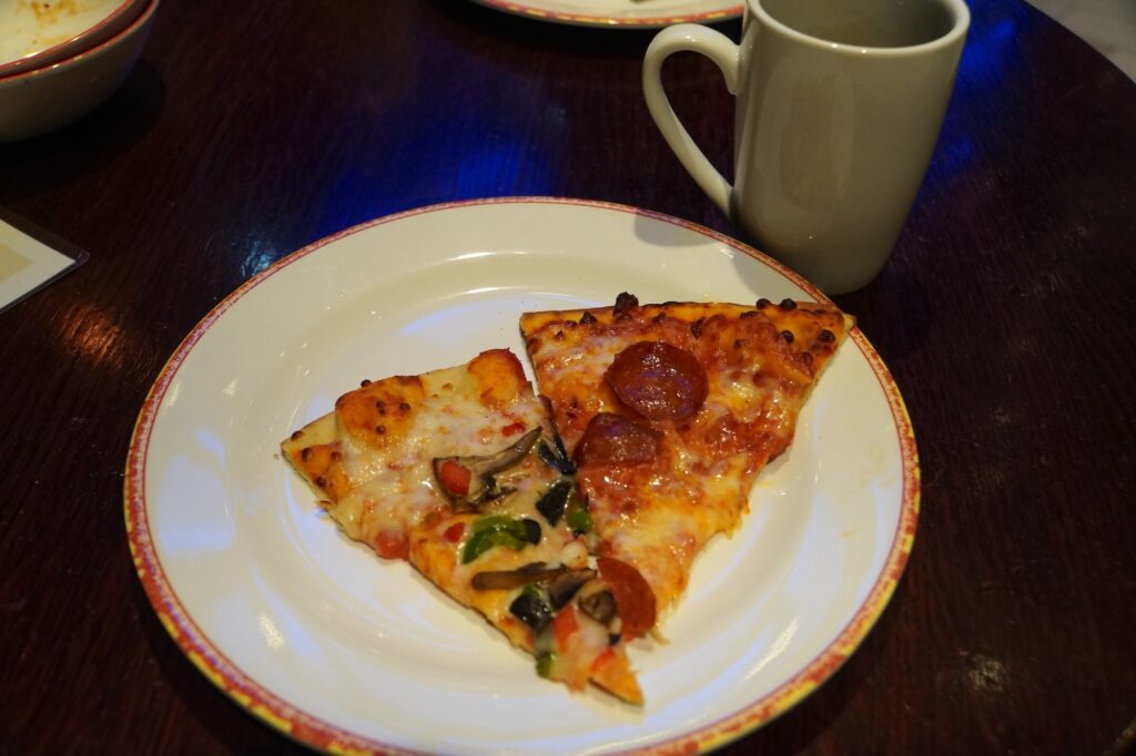 クルーズで意外だったのが、大体のレストランが21時には閉まってしまうこと。ただ、Sorrento’s Pizzaだけは夜中までオープンしているので、ここではショーの後のシメ”ピザ”が私たちの定番となりました。