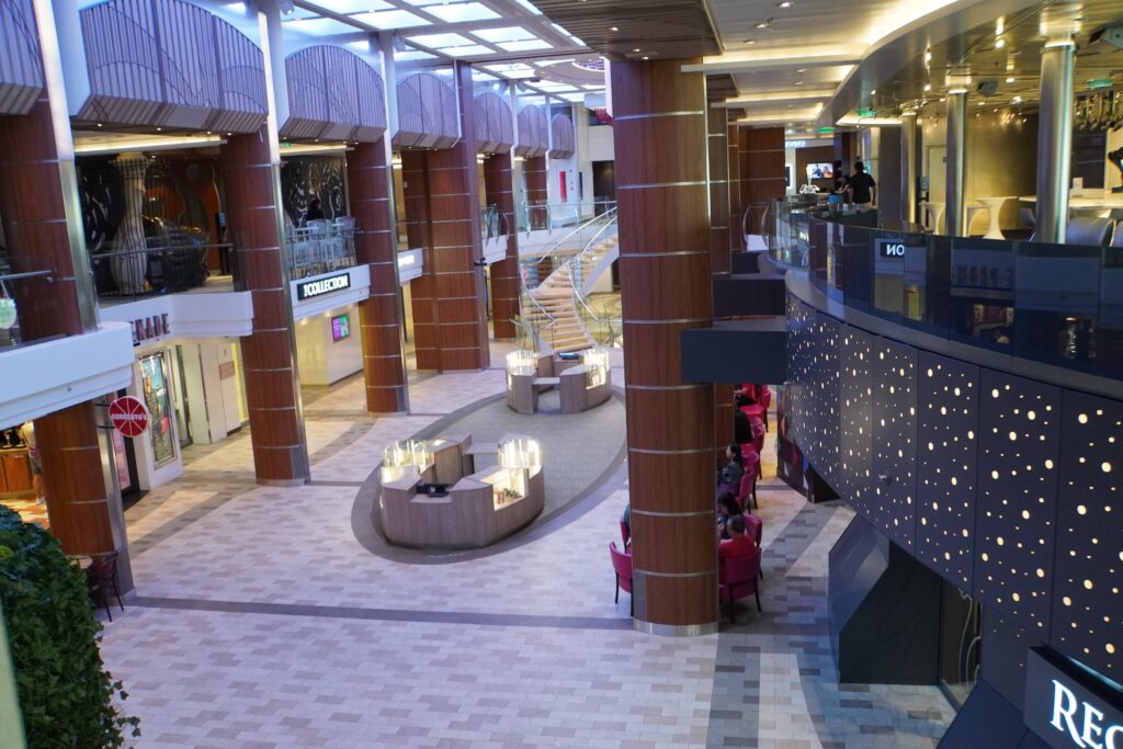 いざ、乗船!船への乗り込みはとてもスムーズで私たちの場合はほとんど立ち止まることなく、船内に入れました。クルーズ船は大きなホテルを積んでいるようで驚きです。中に入ると美しいショッピングモールのような内観が広がり、ここは船の上?と疑ってしまうほど。
