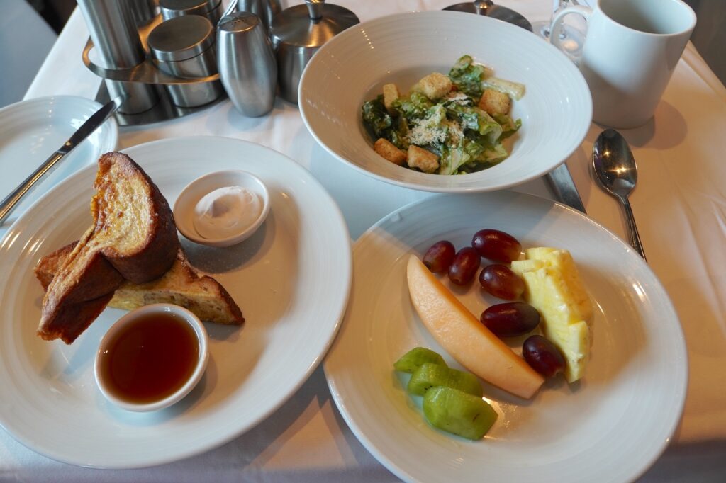 最終日はまるまる1日、船でゆっくり過ごせるのも嬉しい。その日に限って夜しかオープンしないメインダイニングでもブランチを開催していてビュッフェ形式ではなく、コース式で朝食・ブランチをオーダーできました。私たちも前日にウェイターさんから教えていただいたので訪れることに。このように、柔軟に情報をキャッチしてみてください。