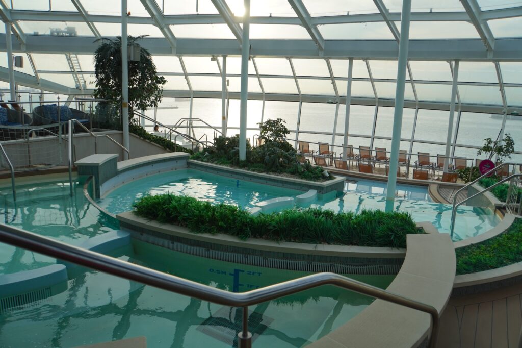 プールは船の中心にあってファミリーで楽しめる屋外プールに加えて室内の温水プール、大人専用のプール「Solarium」があります。