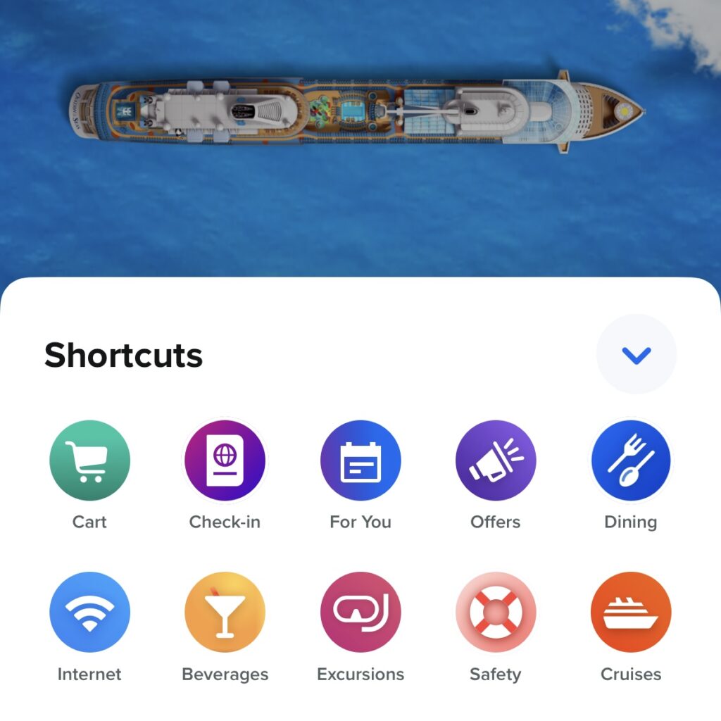 この船旅では、まずはこの船会社専用のアプリのダウンロードからスタート!そこからショーの予約や、もし有料のレストランに行きたい場合はレストランの予約をしていきます。ショーは毎日、開催されていて予約不要のものが多いですが、一部、事前に予約できるものもあるので気になる人は事前予約を。