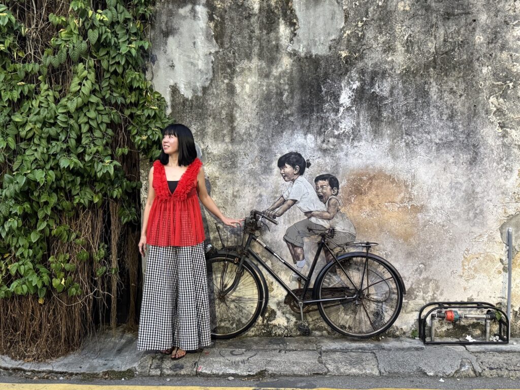 最後にジョージタウンの有名な壁画を見てショッピングを楽しみました。20時くらいまでには船に戻れるようにジョージタウンからトライショー(人力車)で港へ移動。いろいろ巡ってみたものの、ジョージタウンだけでも充分、楽しめるかなっといった印象です。というのもジョージタウンの雑貨屋さんやお土産やさんはとっても可愛くて、お値段もお手頃。時間もなかったので、もっと見てみたかったなという気持ちもありました。しかし、私にとっては2回目の久しぶりのペナン島で、短時間でも十分、楽しかったです。