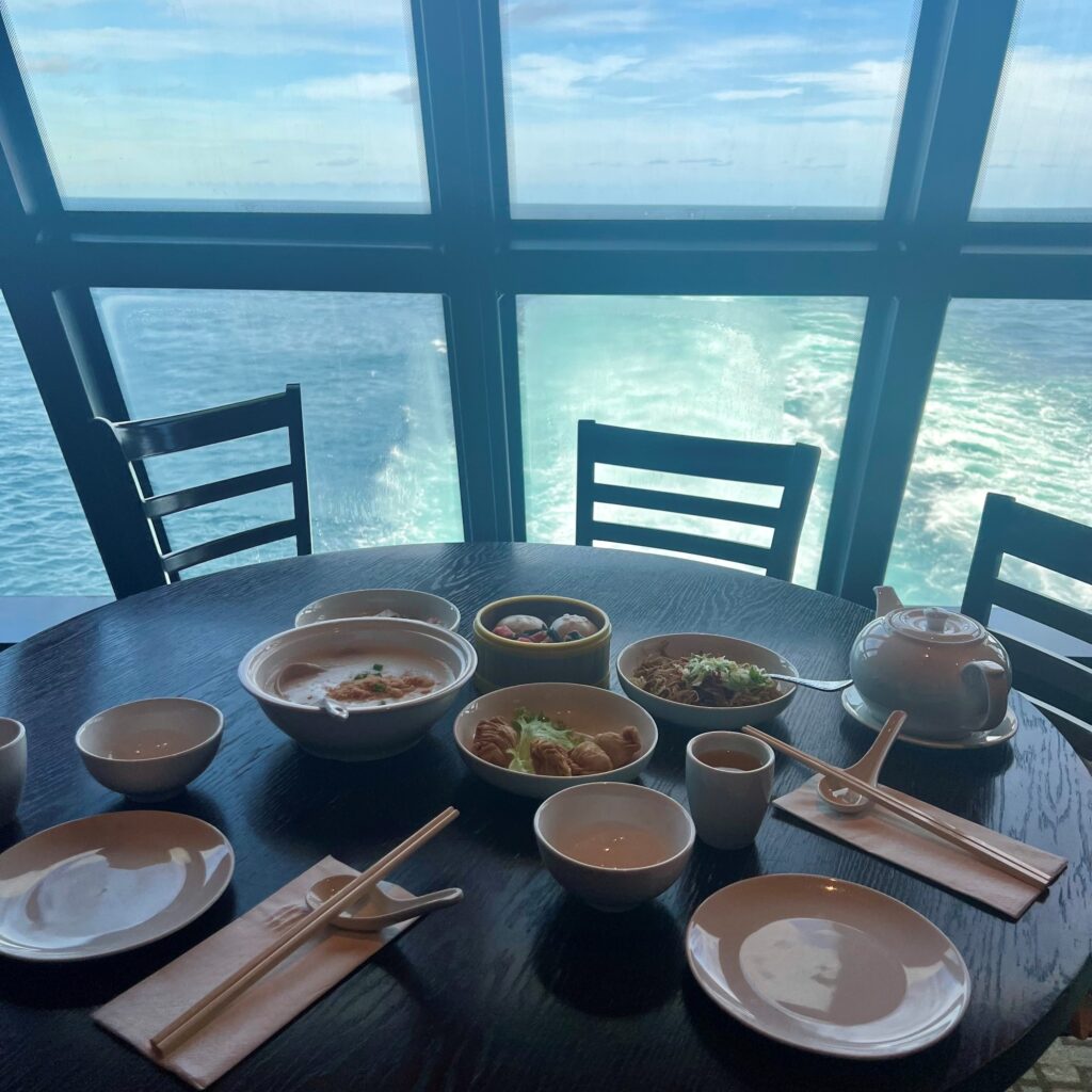 知らない方と相席になって会話するのも楽しいですが、言葉が通じなくて気まずい思いをすることもなく、クルーズ初心者には良いと思いました。